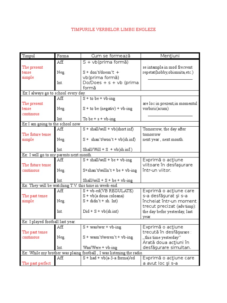 Pentru verbul in engleza timpurile difera fundamental fata de cele ale limbii romane. 9 видео 14 004 просмотра обновлен 10 окт. Învață rapid o nouă limbă străină cu 125 de lecții gratuite. Invata limba engleza online gratuit fara profesor sau inscriere. Tabelul te ajută să îți sistematizezi în minte timpurile verbale din limba engleză.
