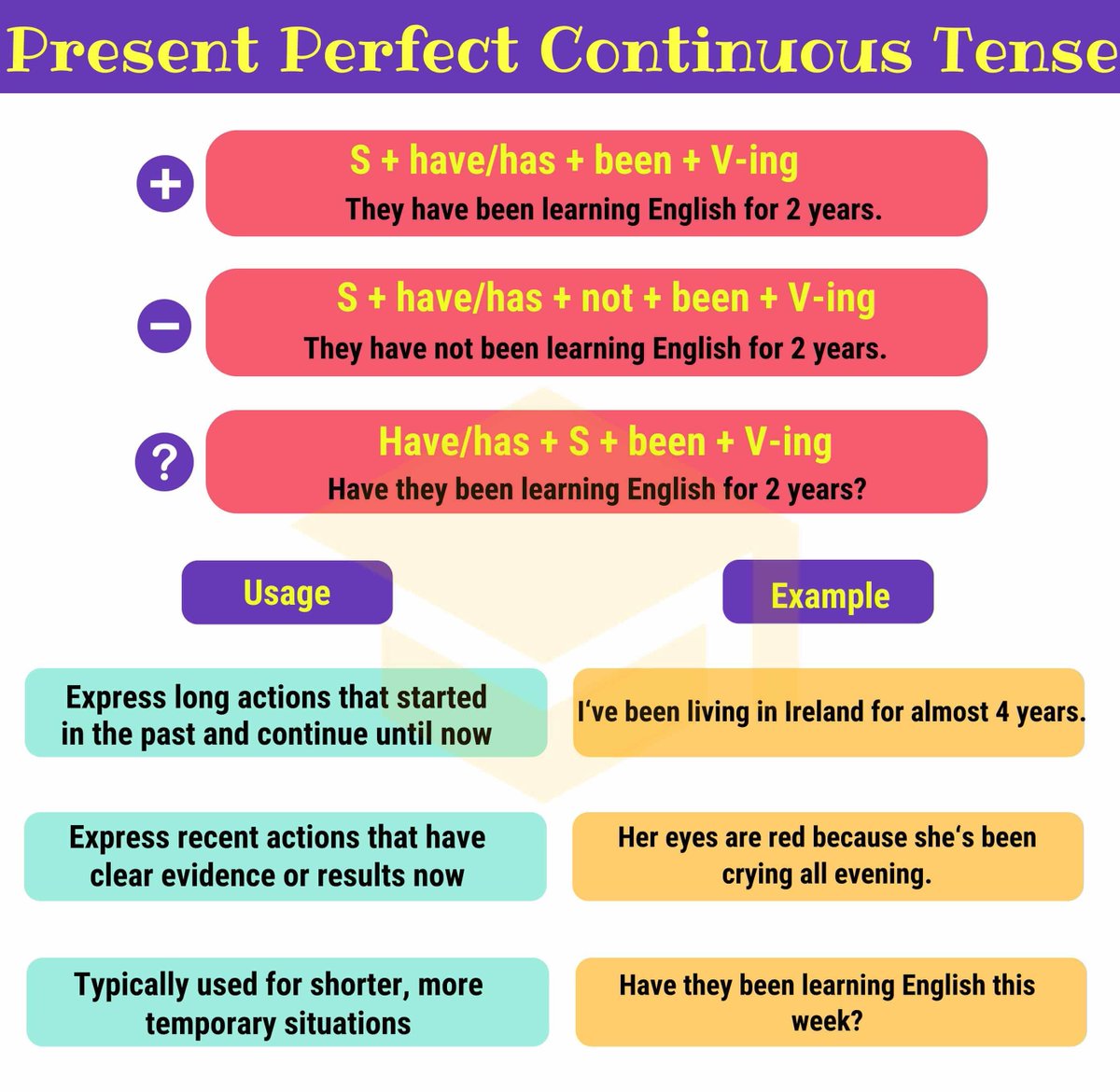 Now or regularly true or false. Present perfect continuous tense indicates that something started in the past and is continuing at. Read on for detailed descriptions. The present perfect continuous is used to refer to an unspecified time between 'before now' and 'now'. Present perfect continuous використовується для вираження дії, що почалася в певний момент у минулому та тривала до теперішнього моменту або ж досі триває у теперішньому часі.